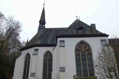 Herkenrath: Nach vielen Höhenmetern auf einsamen Straßen zwischen Immekeppel und Herkenrath ist der nächste Wegepunkt die Kirche St. Antonius Abbas in Herkenrath. Der Ort ist ein Stadtteil von Bergisch Gladbach. Die Siedlung Herkenrath wird das erste Mal im 12 Jhd. im „Codex Theoderici“ erwähnt. Neben Bensberg wird auch Herkenrath als Pfarrei benannt.