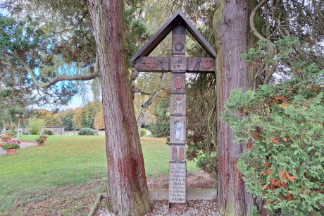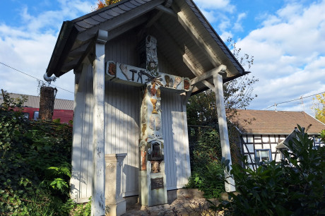 am Siegweg in Dattenfeld: Der Standort dieses Kreuzes war ursprünglich 100 m siegaufwärts. Es wurde aufgrund der Bebauung des Siegufers versetzt.