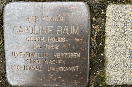 Caroline Baum, gesch. Moses wurde 1882 als Tochter von Alexander Baum und Rebecka Baum, geb. Behr geboren. Nach dem unfreiwilligen Umzug der Familie nach Aachen (1939) ist ihr weiteres Schicksal unbekannt.