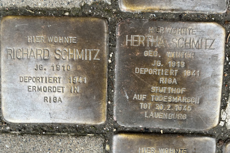 Richard Schmitz wurde am 24.08.1910 als Sohn von Levi Schmitz und Fanny Schmitz in Binningen geboren, er heiratete Hertha Winter, Kinder sind nicht bekannt. Richard wurde am 11.12.1941 ab Düsseldorf ins Ghetto Riga deportiert, wo er ermordet wurde. Er wurde 31 Jahre alt.