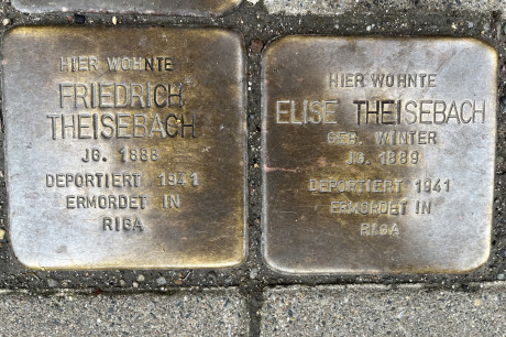 Friedrich Theisebach wurde am 03.12.1888 in Hatzbach geboren, er heiratete Elise Winter, Kinder sind nicht bekannt. Friedrich wurde vom 17.08.1938 bis zum 22.12.1938 als Schutzhäftling im KZ Dachau inhaftiert. Am 11.12.1941 wurde er ab Düsseldorf ins Ghetto Riga deportiert, wo er ermordet wurde. Er wurde 53 Jahre alt.