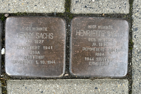 Jenny Sachs wurde am 20.05.1927 als Tochter von Philipp Sachs und Henriette Sachs, geb. Winter in Barmen-Elberfeld geboren. Jenny wurde am 11.12.1941 ab Düsseldorf ins Ghetto Riga verbracht, von dort aus am 01.10.1944 weiter ins KZ Stutthof deportiert, wo sie am gleichen Tag noch ermordet wurde. Sie wurde nur 17 !! Jahre alt.