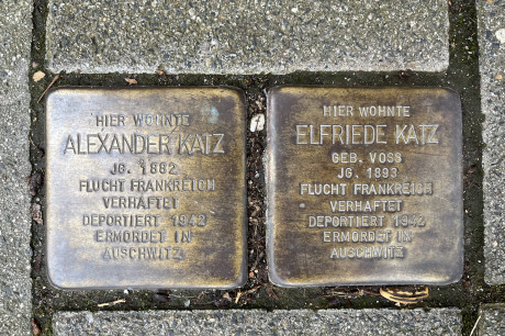 Elfriede Voss wurde am 29.06.1893 als Tochter von Jakob und Johanna Voss in Mönchengladbach geboren. Sie heiratete Alexander Katz, Kinder sind nicht bekannt. Nach einem – sehr wahrscheinlich unfreiwilligen – Umzug nach Köln (Quelle) emigrierten Alexander und Elfriede nach Frankreich. Am 02.09.1942 wird Elfriede mit dem Transport 27, Zug 901-22 von Drancy ins Vernichtungslager Auschwitz deportiert, wo sie ermordet wurde. Sie wurde 59 Jahre alt.