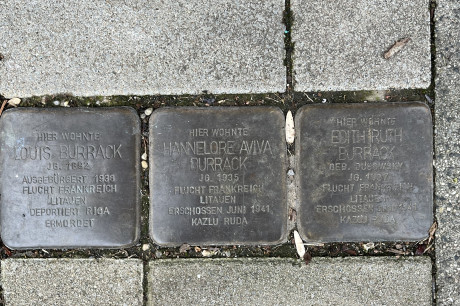 Orkener Str. 88: Louis Burrack (Strittig: In dieser Quelle wird auch der Familienname Burrak genannt) wurde im Jahr 1892 als Sohn von Abba Burrack und Selda Burrack, geb. Merber in Riga geboren. Er war unverheiratet, als Beruf wird Kaufmann angegeben. Louis wurde 1938 ausgebürgert und konnte über Frankreich nach Litauen fliehen. Dort wurde er ins Ghetto Riga deportiert und im Jahr 1942 ermordet. Er wurde 50 Jahre alt.