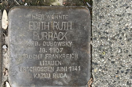Edith Ruth Dubowsky (Strittig: Diese Quelle nennt Dubowski als Geburtsnamen) wurde am 26.02.1907 als Tochter von Lewin Dubowsky und Johanna Ella Dubowsky, geb. Rosenthal in Tilsit geboren. Sie heiratete Siegfried Burrack, eine Tochter (Hannelore) ist bekannt, die Ehe wurde geschieden. Edith und ihre Tochter konnten über Frankreich nach Litauen fliehen, am 21.06.1941 wurden beide in Kazlų Rūda erschossen. Sie wurde 34 Jahre alt.