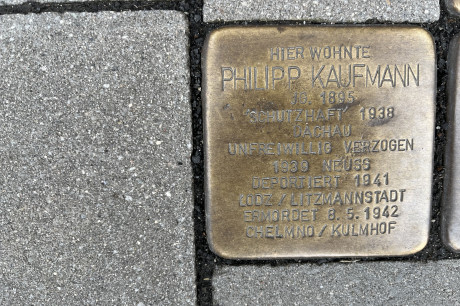 Philipp Kaufmann wurde am 04.06.1895 in Gustorf geboren. Er heiratete Selka Oberschützky, als Beruf wird Schuhhändler angegeben. Vom 17.11.1938 bis 19.12.1938 wurde er im Konzentrationslager Dachau in Schutzhaft inhaftiert. Nach dem unfreiwilligen Verzug der Familie nach Neuss wurde Philipp von dort aus im Jahr 1941 mit dem Transport 13 ab Düsseldorf ins Ghetto Litzmannstadt verbracht, von dort weiter am 07.05.1942 ins Vernichtungslager Kulmhof deportiert und dort am 08.05.1942 ermordet. Er wurde 47 Jahre alt.