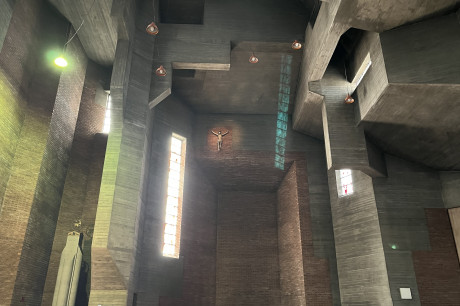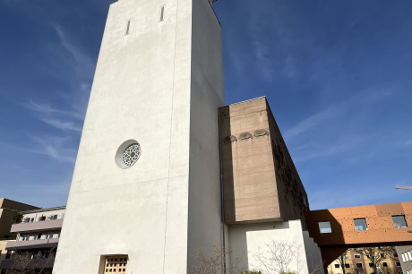 Platz der Kinderrechte: Die nach Plänen von Gottfried Böhm bis 1959 errichtete Kirche Zur Heiligen Familie in Köln-Sülz war ursprünglich die Kirche für das damalige Waisenhaus am Sülzgürtel. Nachdem die Einrichtung ab 2009 schrittweise verlegt wurde, erfolgte 2020 der Umbau der Kirche zu einem mulifunktionalen Veranstaltungsort nach Entwurf von Nebel Pössl Architekten.