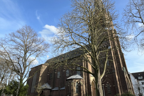 Krefelder Straße: ls jüngste der Kirchen in der linksrheinischen Innenstadt sticht St. Gertrud durch ihre markante Architektur sofort ins Auge.