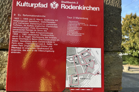 20 Kirchen unterschiedlicher Konfessionen, die zum Großteil nach Entwürfen der Architekten Dominikus, Gottfried, Paul Böhm geschaffen wurden und schon heute vielfach Denkmäler sind und zum Teil vielfach genutzt werden, nicht nur zu Gottesdiensten. Da die Kirchen mitten in Gemeinden stehen, mitunter eine anstrengende Tour mit zig-Ampeln, dann aber auch - wo denn Kirchen geöffnet hatten - eine Ruhe und Stille, die ihresgleichen sucht. Keine Ablenkung von viel drumherum, sondern teilweise betonartig schlicht.